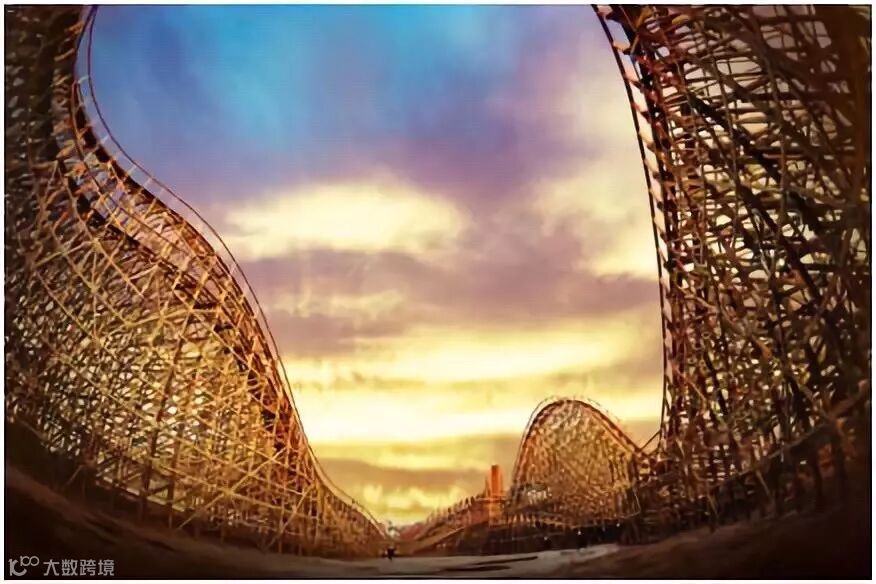 木质过山车除了基础部件以外全由木头拼接而成,它采用美国木材,先进的拼接技术,安全系数极高。所有木头整整齐齐的堆砌起来,在阳光映照下泛出金黄色,用“颜值巨兽”来形容它也不为过,结构上很类似叠纸牌,看起来就有一种视觉的震撼感。