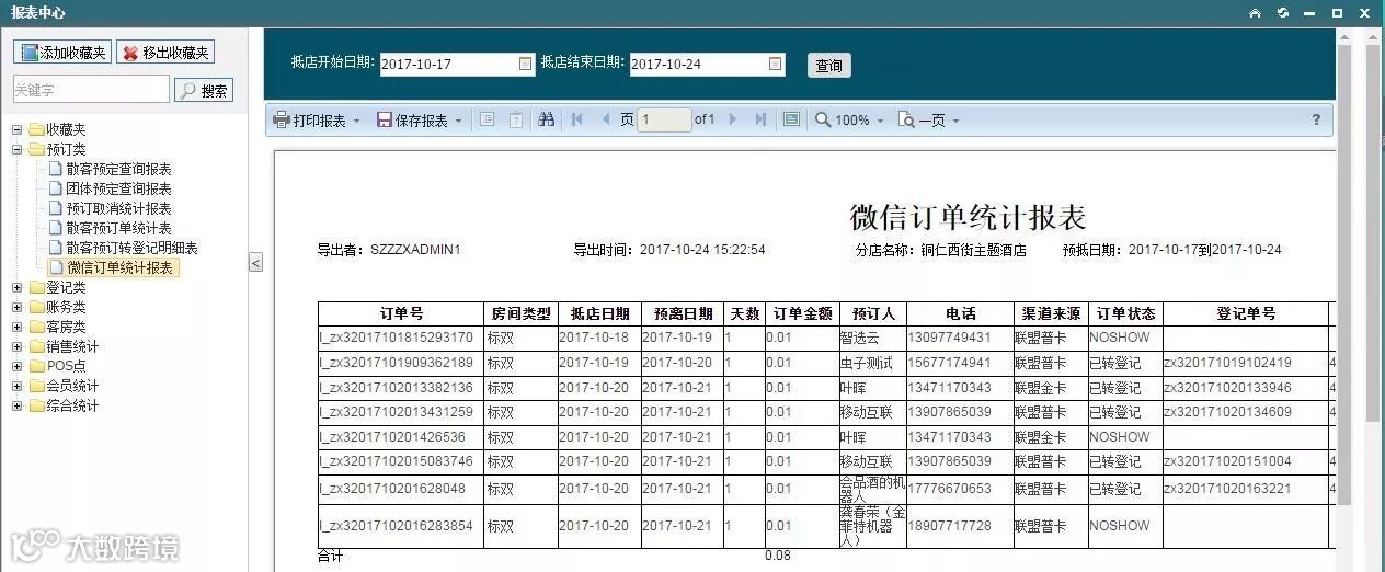 5.新增报表:报表中心-预订类-微信订单统计报表