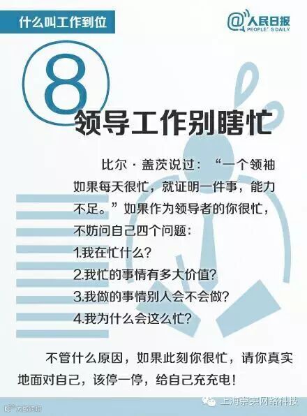 你真的知道什么叫“工作到位”吗?汇报工作说结果,结果思维是第一思维;请示工作说方案,不要让老板做问答题;做工作总结要描述流程,不只是先后顺序逻辑清楚;布置工作说标准,通过标准确定规范,划定工作边界……8张图告诉你什么是真正的“工作到位”↓↓↓