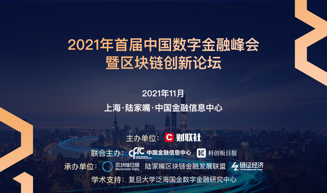 值此之际,为助力数字金融的发展,提升各方对区块链技术在金融领域应用的认知。财联社区块链日报、中国金融信息中心、链证经济联合发起了“2021年首届中国数字金融峰会暨区块链创新论坛”,活动将于2021年11月9日在上海举行。
