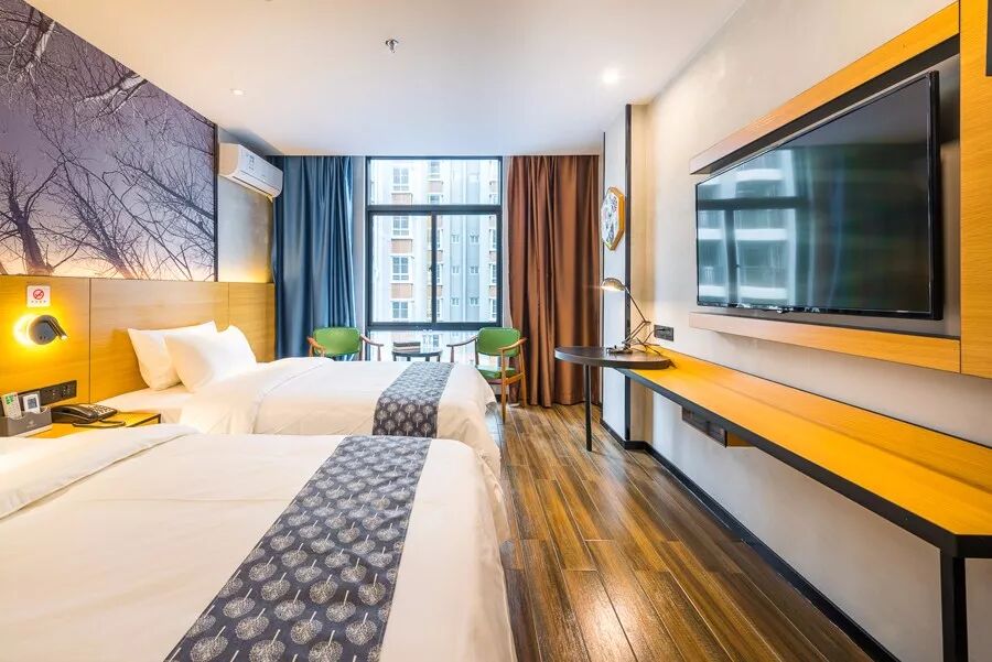 酒店配备了中档酒店应有的配套,商务餐厅、容纳80-100人的会议室、自助洗衣房、书吧、水果休闲吧、咖啡、奶茶、大型停车场等……除此之外,在酒店还提供我们的会员住宿含三餐、水果任吃、免费停车、免费洗车、30元送机/高铁等惠民服务。每间客房拥有独立Wifi全覆盖,客房有广电+安卓点播(即优酷、爱奇艺等)系统,还为专属人群设置有麻将套房。