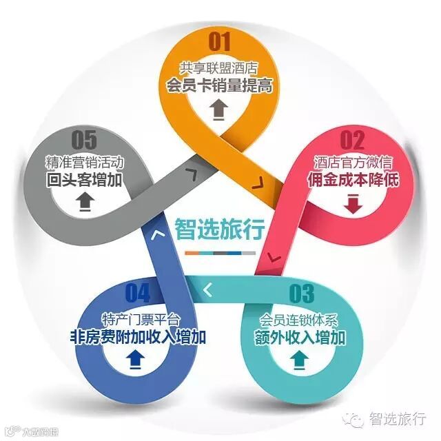智选旅行平台通过直销、会员、商城接入,全方位提高酒店收入!加入共享酒店联盟,会员卡销量提高500%;建立酒店官方微信,佣金成本降低50%;对接会员连锁体系,额外收入增加500%;线上特产门票销售,非房费附加收入增加200%;每月精准营销活动,回头客增加100%。