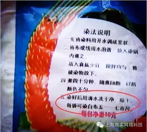 这种化工染料的外包装正面写有“洛阳化工采购供应站监制”字样,背面还注明“每袋可染白布五至七市尺”。