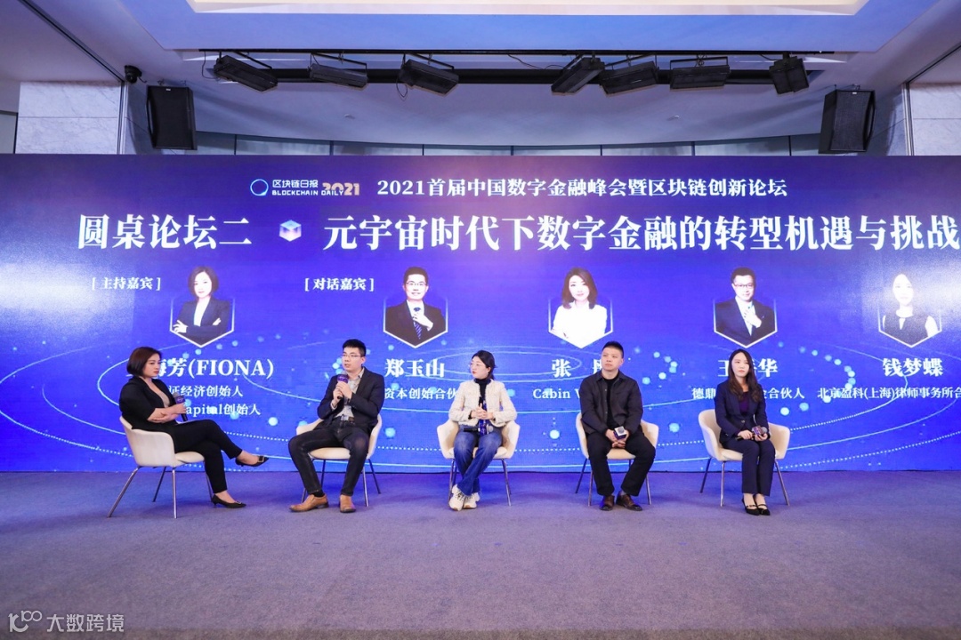 圆桌论坛二:《元宇宙时代下数字金融的转型机遇与挑战》由链证经济、Koioz Capital创始人罗梅芳(Fiona)主持,水滴资本创始合伙人郑玉山、Cabin VC副总裁张彤、易居(中国)区块链科创中心总经理林冬成与北京(盈科)律师事务所合伙人律师钱梦蝶四位来自不同领域的专家参与讨论。