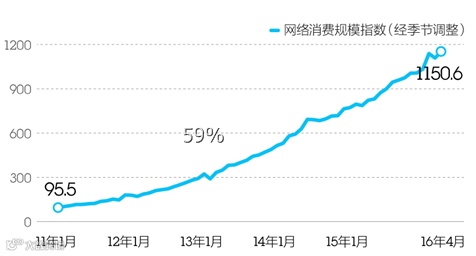5月22日发布的全国网络消费指数报告数据显示,从2011年1月至今,网络消费规模指数扩大了整整12.1倍!吃喝玩乐等服务型网络消费规模指数扩展了70.2倍。
