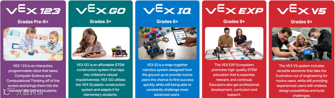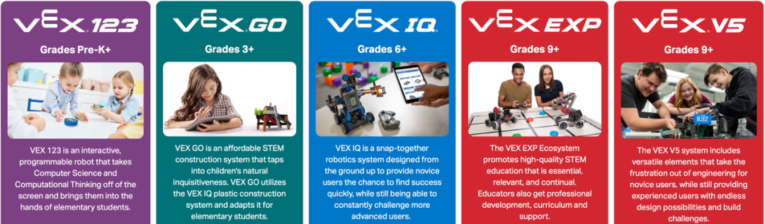 Vex赛事系列我们在前面重点介绍过,大赛组别包括:VEX GO(6+)/VEX IQ 小学组(7-12)+ 初中组(12-16)/ VEX EDR 初中组(12-16)+高中组(16-18)/VEX U 大学组(18+)/ VAIC 高中组+大学组(15+)。详细可以点击阅读👇