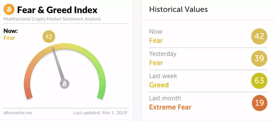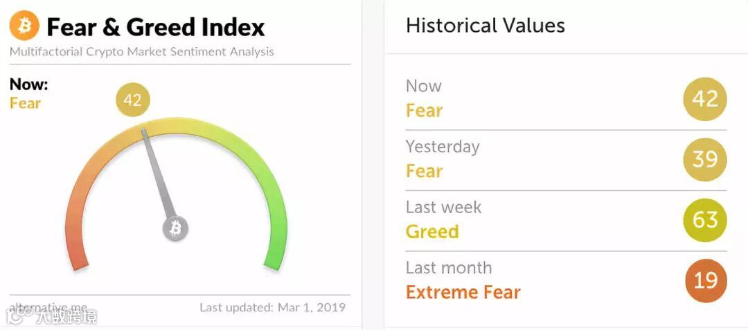 “恐惧贪婪”指数:https://alternative.me/crypto/fear-and-greed-index/,也可以在白话区块链官网(https://www.hellobtc.com)查看。