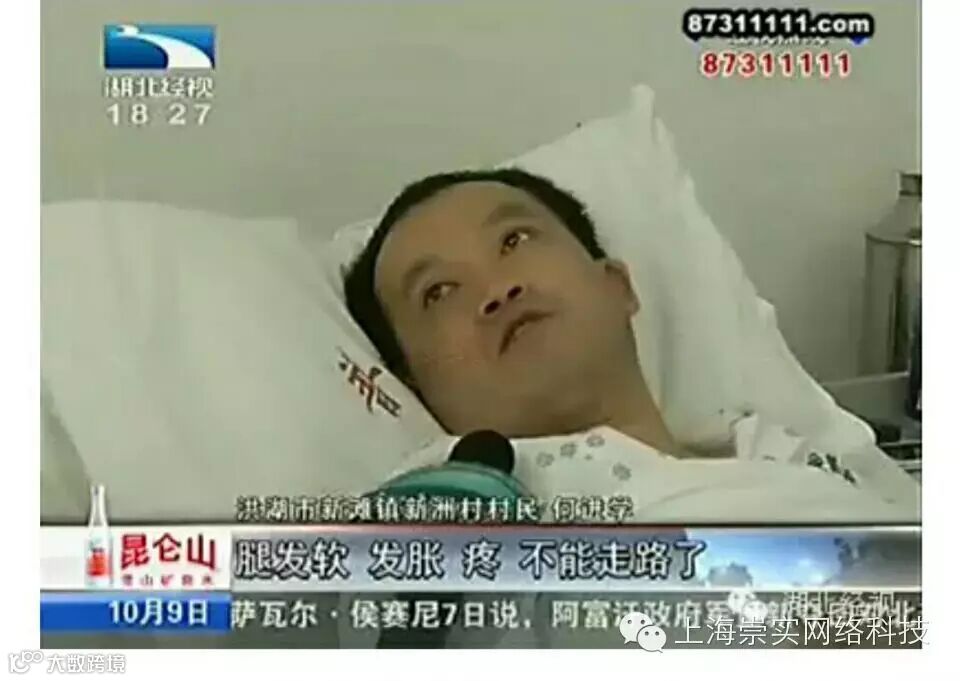 6天后,武汉一家大医院神经内科确诊何进学患了急性脊髓炎,病毒已损害了脊髓。这时,他已完全瘫痪,腰以下没有知觉,大小便失禁。