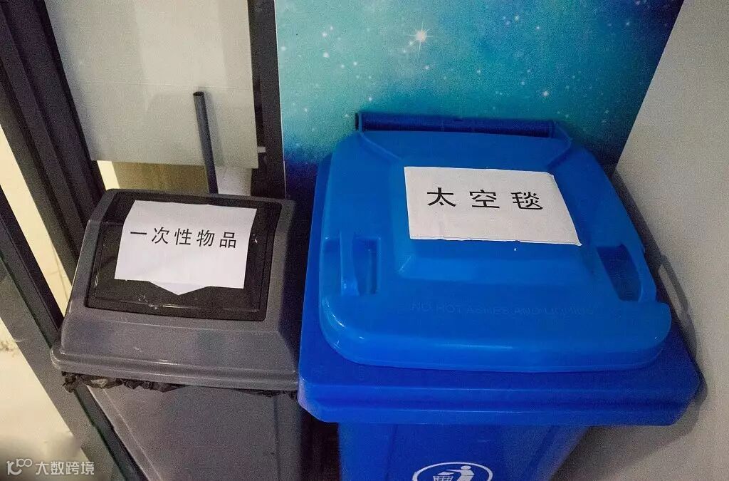 使用者在休息后,需将一次性床品投入箱内回收再消毒。