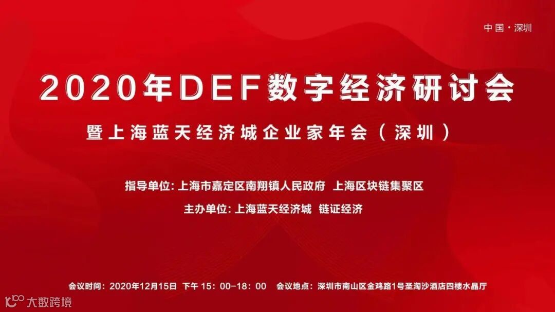 12月15日,“DEF数字经济研讨会暨上海蓝天经济城企业家年会·深圳”在深圳市南山区圣淘沙酒店隆重召开。本次活动由上海市嘉定区南翔镇人民政府、上海市区块链集聚区指导,由上海蓝天经济城、链证经济主办。来自深圳特区数字经济领域的各界代表参加本次研讨会,针对数字经济时代下的区块链产业发展机遇与挑战、数据资产的价值挖掘与创造、区块链产业应用与数据革命等话题展开讨论,共话数字经济各领域全产业链的整合和生态打造。