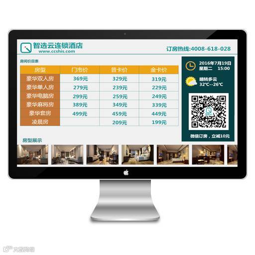 酒店各类房型图片循环播放,客人通过图片即可看房选房,方便快捷。