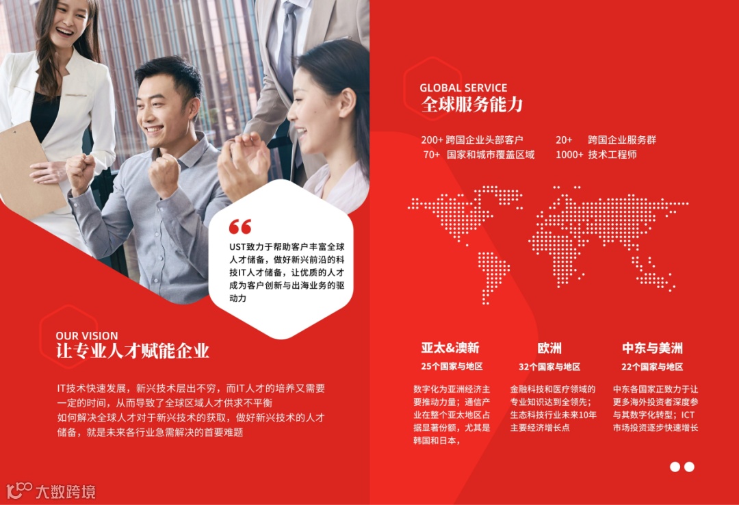 UST成立于2008年,业务覆盖了亚太地区超过21个国家以及地区,为超过200家《财富》全球500强企业提供专业服务。UST以科技为本,数智化为载体,帮助企业实现以提升运营和业务为发展目标的战略,推动新兴科技的发展与社会的数智化变革。