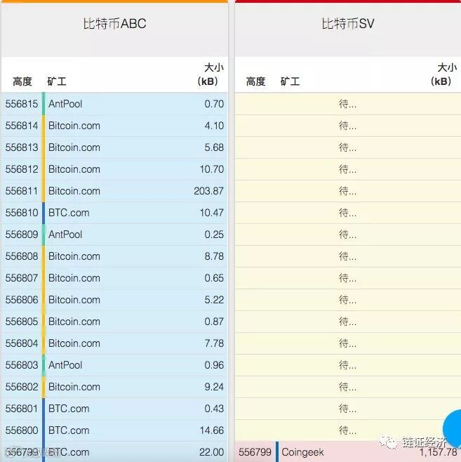 就在 BCH 分叉的 14 分钟后,ABC 链连出了两个块,另一边厢的 SV 链却毫无动静。这让不少观战者感到 CSW 出师不利。