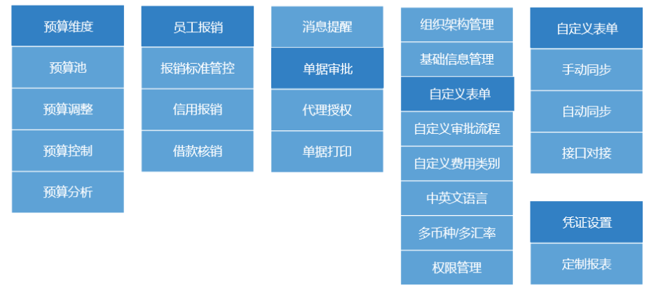 在系统的不同模块内,用户均可通过灵活化的配置类操作,实现预算、审批、报表等功能的自定义配置处理,以满足不同企业的个性化需求,大幅减少定制化的开发工作量和上线周期。