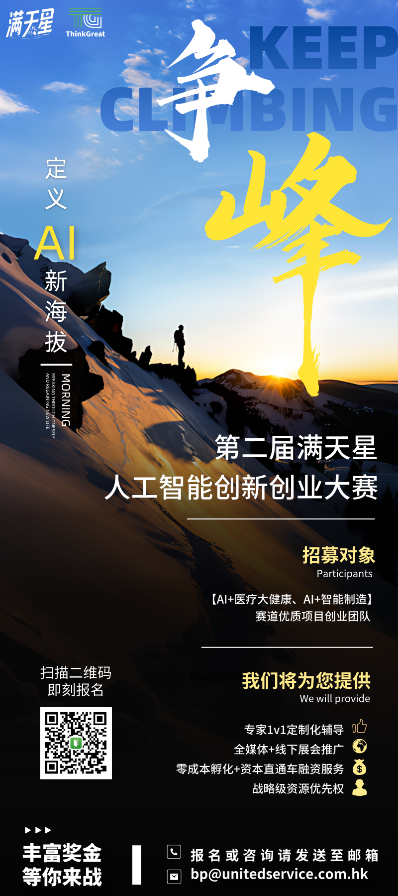 在人工智能技术深度赋能产业升级的新时代背景下,为加速AI技术在医疗大健康、智能制造等关键领域的创新应用,现正式启动第二届满天星人工智能创新创业大赛。