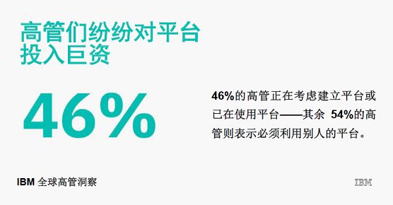 IBM预测,未来两至三年,重新分配的平台业务模式预计将达到1.2万亿美元,目前已投入资金约4,200亿美元。在平台投资方面最积极的行业包括:工业产品(+ 25%),电子(+ 22%),汽车(+ 20%)和零售(+ 17%)。