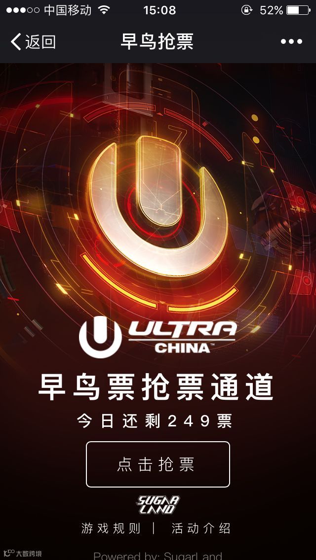 独家线上销售Ultra China早鸟票,500张门票一抢而空,一票难求!