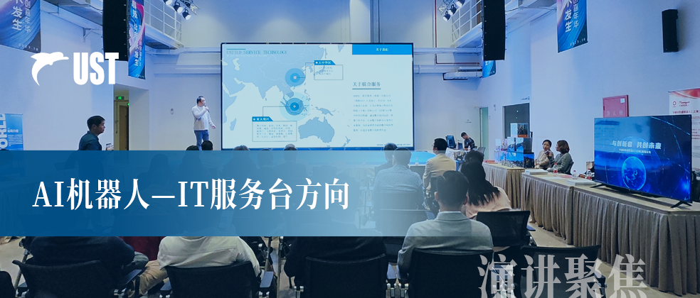 UST受邀参加此次活动,UST首席产品架构设计师康乐与各行各业的从业者分享AI机器人服务台解决方案,与坚持数字化变革的朋友相会。