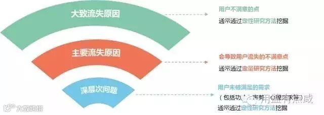 在设计好研究流程后,我们就可以开始实施研究方案,挖掘出流失用户在使用产品时的痛点和困惑,深入了解他们使用产品时的体验和对产品的述求。常见的研究方法诸如问卷法、访谈法、竞品分析、焦点小组、行为日志分析等在流失研究中都可以使用,这些常见方法相信大家已经在其它研究项目中已经接触过了,大致的方法要点在此就不做赘述了。