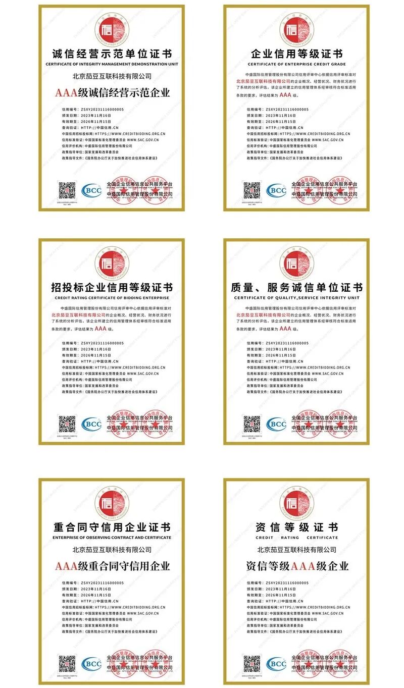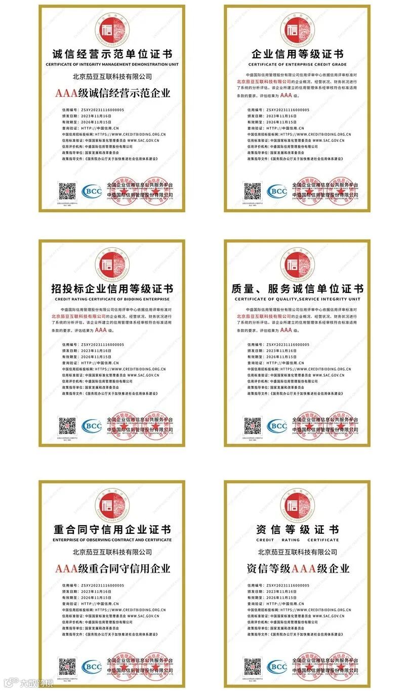 AAA级信用企业作为信用评价体系中的最高信用等级,代表着企业诚信经营、发展前景广、合同履约能力强、风险防范能力强,是值得信赖的商业合作伙伴。这一系列荣誉的获得,充分体现了评级机构和资本市场对茄豆综合实力的高度认可,对茄豆战略管理和发展前景的长期看好,也是对茄豆品牌实力、经营规模、履约能力和社会贡献的充分肯定。