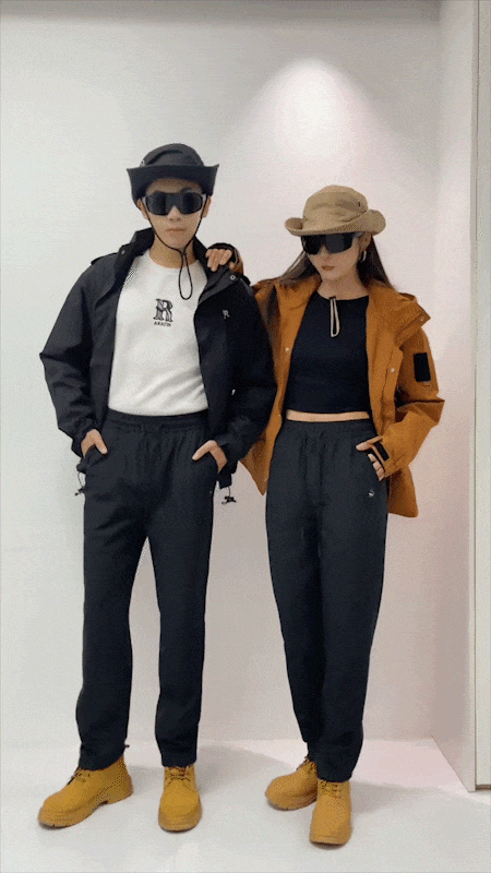 男女同款,萝卜裤型,上宽下窄,有种工装帅气感,配上靴子,酷guy本人~