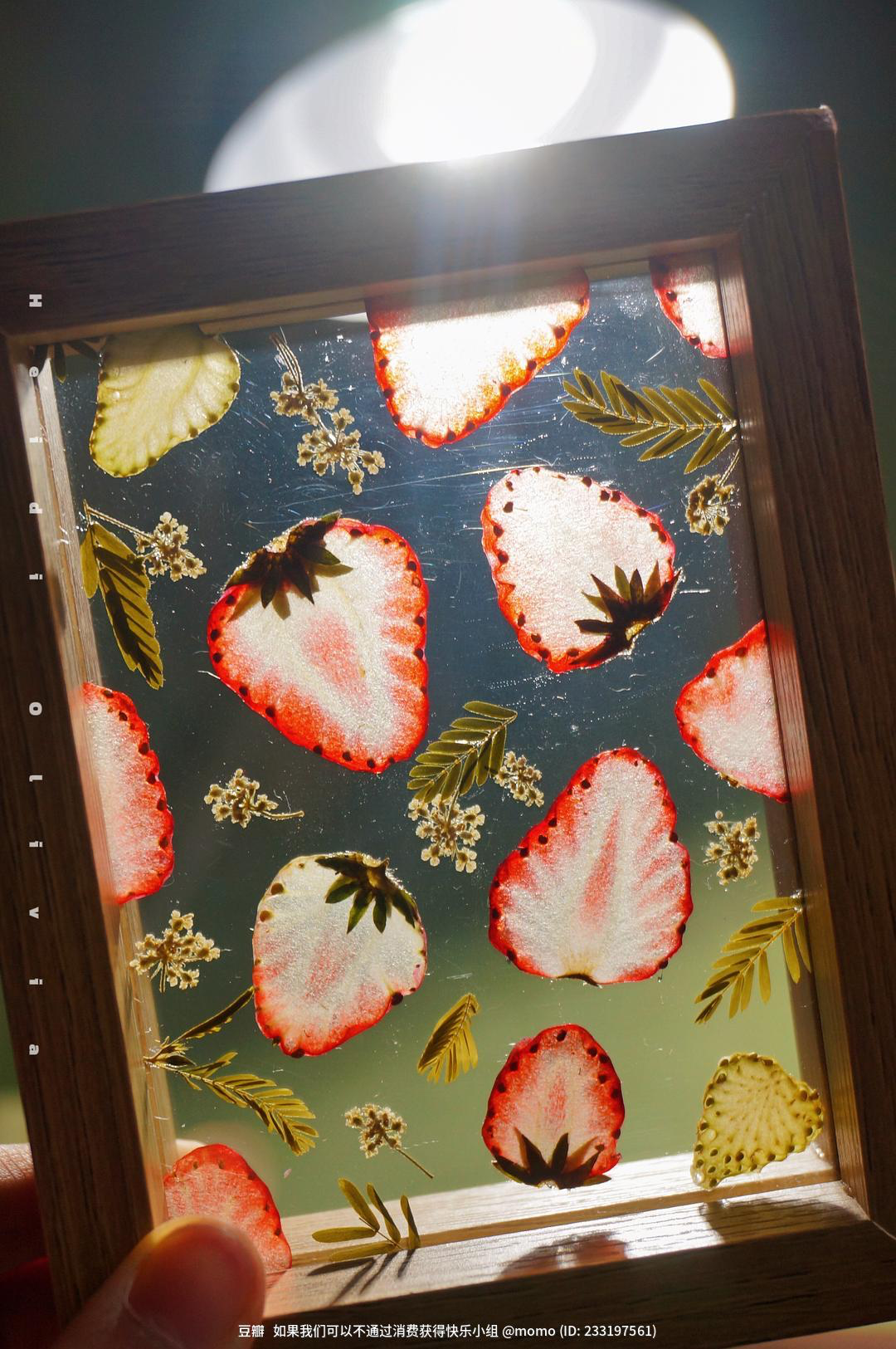 有几颗没熟的草莓也被我切片做压花了,算是废物利用。