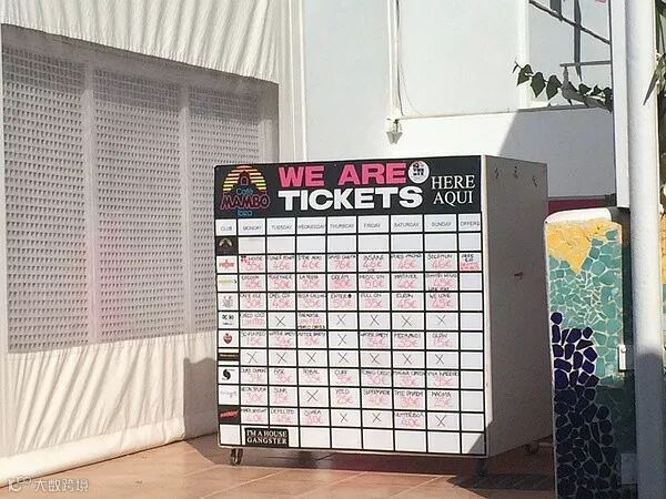 岛上随处可见的派对张贴墙,所有知名夜店都有着自己的纪念品专卖店,出售印有夜店logo的各种周边产品。