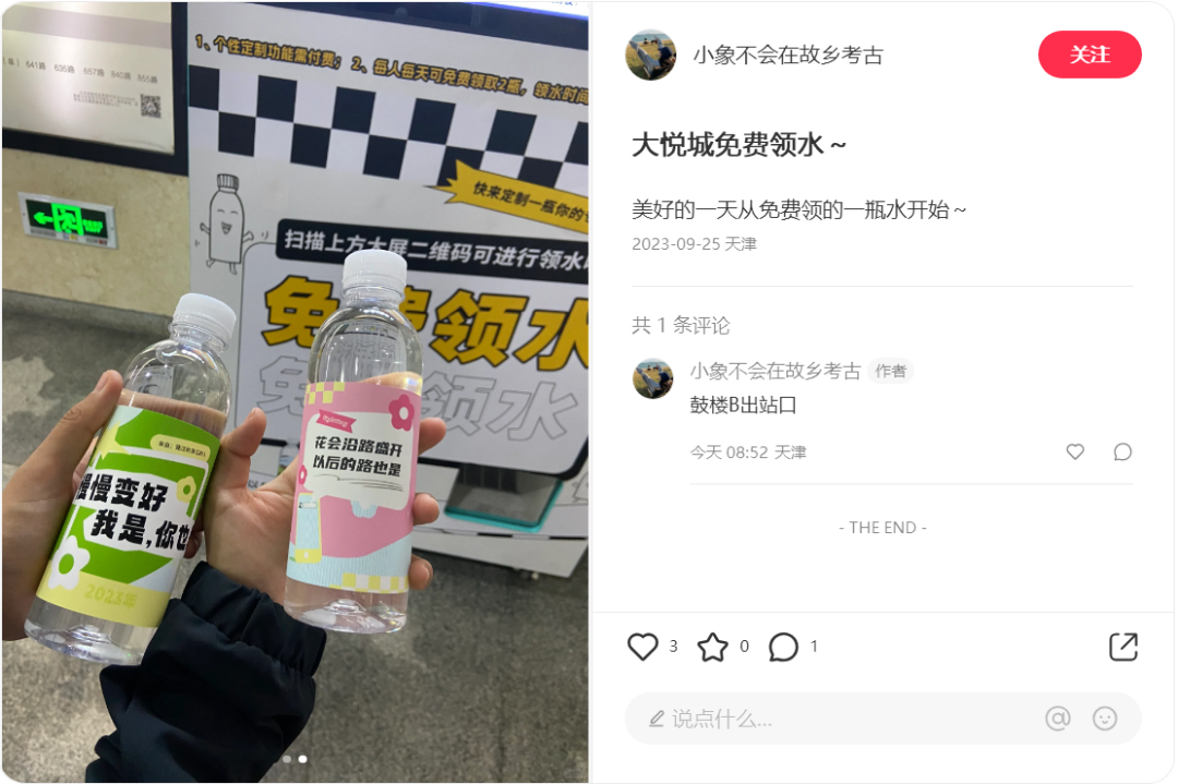 这些评价是天津市民和乘客对茄豆科技免费领水服务最大的肯定、支持和认可,茄豆科技和天津地铁双方达成的这项战略合作极大地提升了天津出行市民的幸福感和满意度,真正做到了让地铁乘客省钱、省事、省心、省力。
