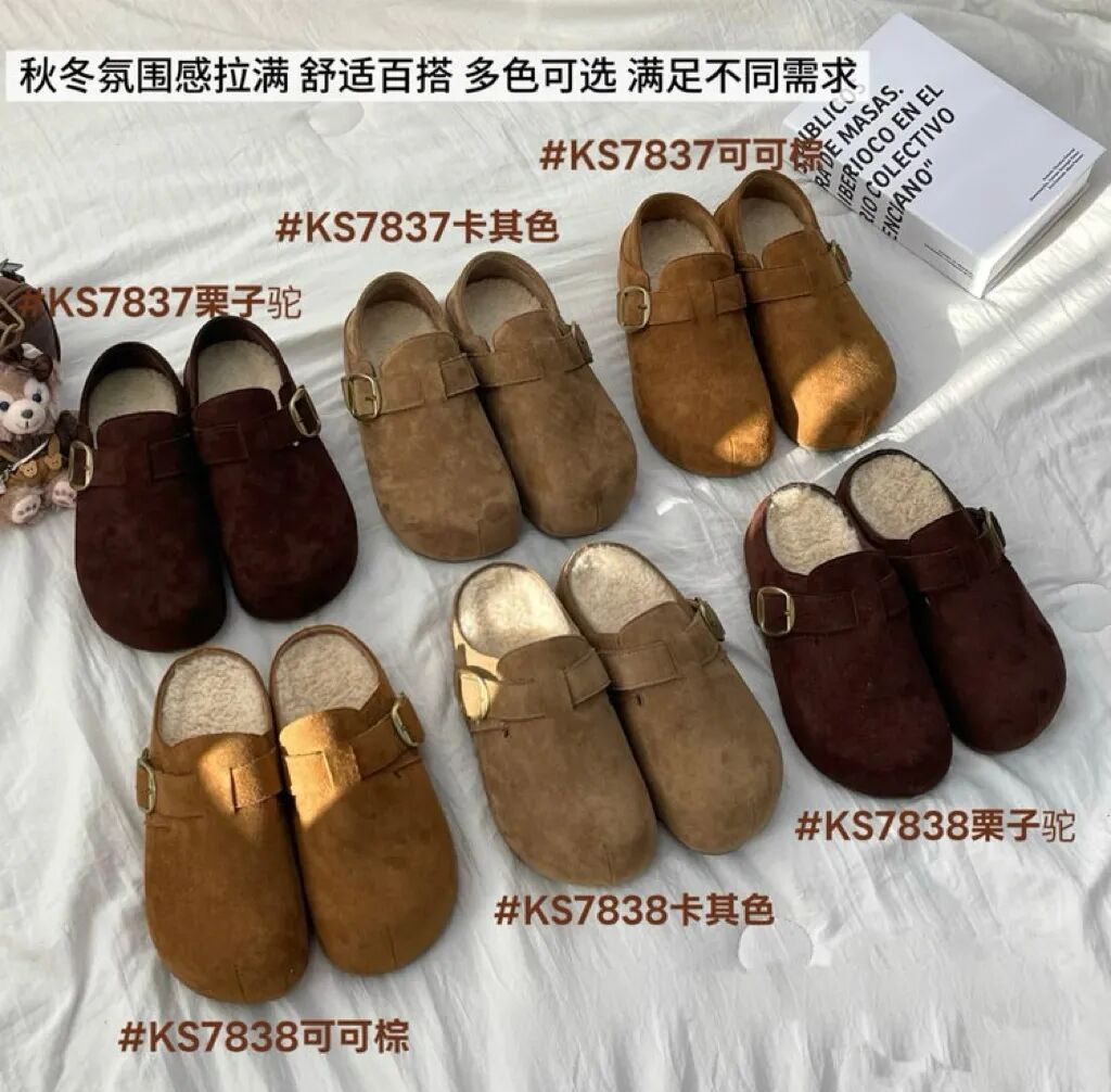 也是全包款和拖鞋款2种款式,可可棕,栗子驼,卡其色、咖褐色、迷雾灰5个百搭色。