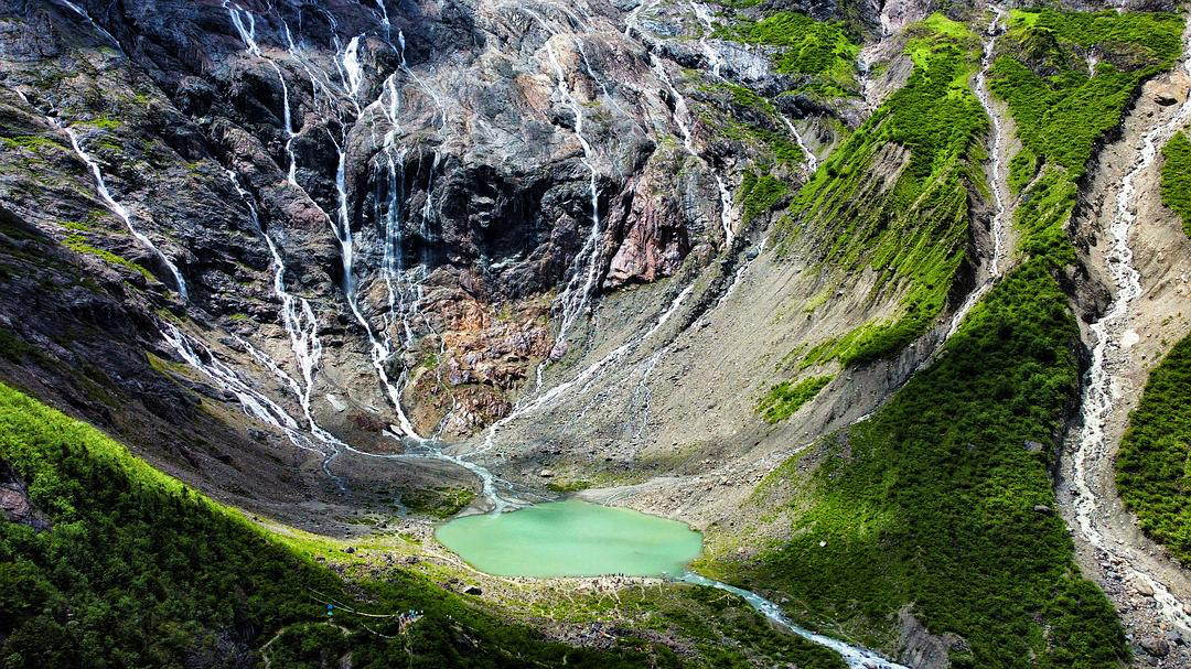 冰湖,梅里雪山冰川融化的雪水汇集而形成的深绿色海子