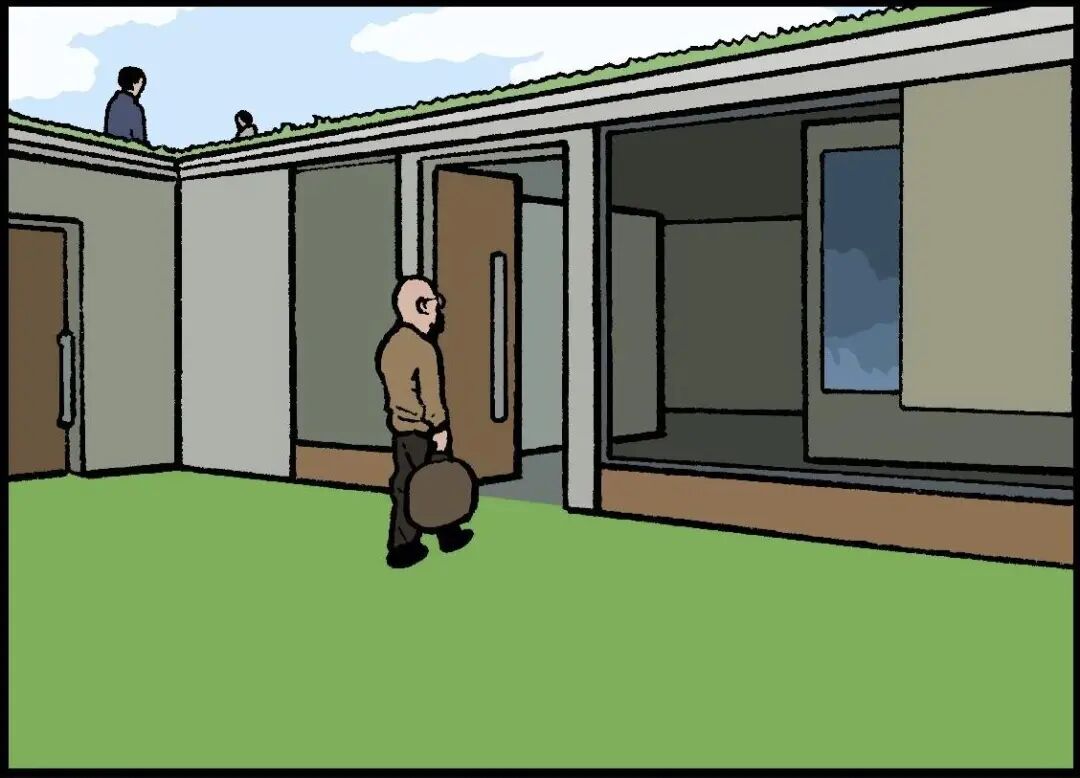 “地下建筑”系列延续了这种想象。他设想一片平地之下的世界,用连环画式的叙事方式呈现出建筑的剖面与动线。画面既像说明书,又像一场潜入式的梦境,让观者在视觉上“走完”这座地下建筑。对他而言,这种构筑并非逃避现实,而是对日常空间的重新构思。