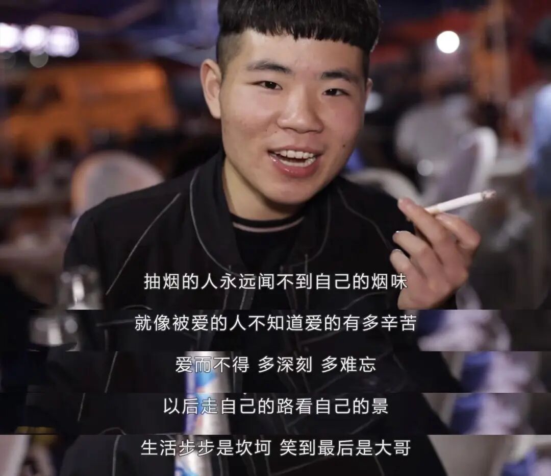 平时,他会在快手上拍视频,说说生活感悟——“抽烟的人永远闻不到自己的烟味,就像被爱的人永远不知道爱得有多辛苦”;“以后走自己的路,看自己的景,生活步步是坎坷,笑到最后是大哥”。