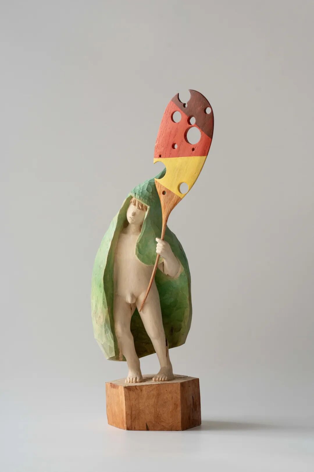 受西浦裕太等艺术家的影响,曾麒在该系列中尝试了大胆的色彩运用。对他而言,上色始终是一种挑战,他常常因色调不理想而推倒重来。尽管过程艰难,他依然认为色彩为木雕注入了更多生命力,尤其在木材的天然纹理与色彩相互映衬时,作品的表现力得到真正释放。