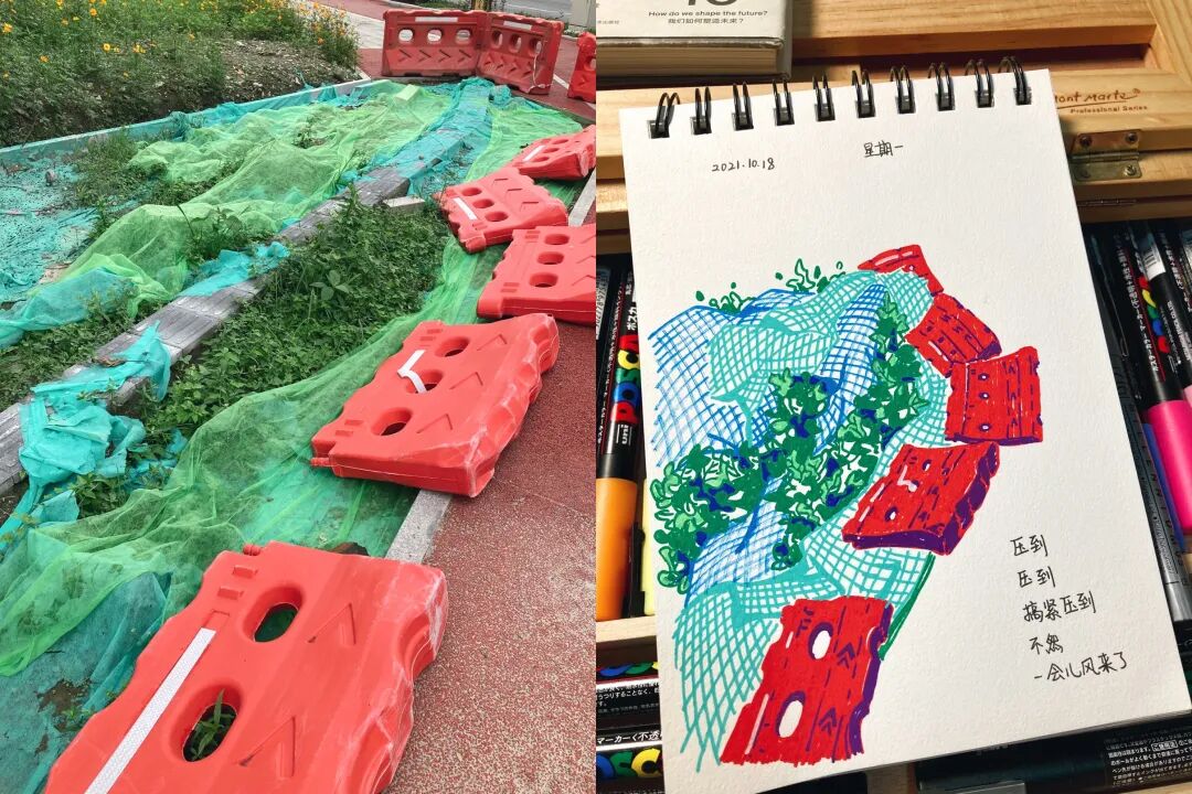 她通过不断的绘画找到自己的“视觉语言”。在骑车上班途中,如果突然看见阳光打在树上很漂亮,就会停下看一看、拍拍照,再画下来,早期「好事手帐」的创作素材大都来源于这些日常细节的观察。