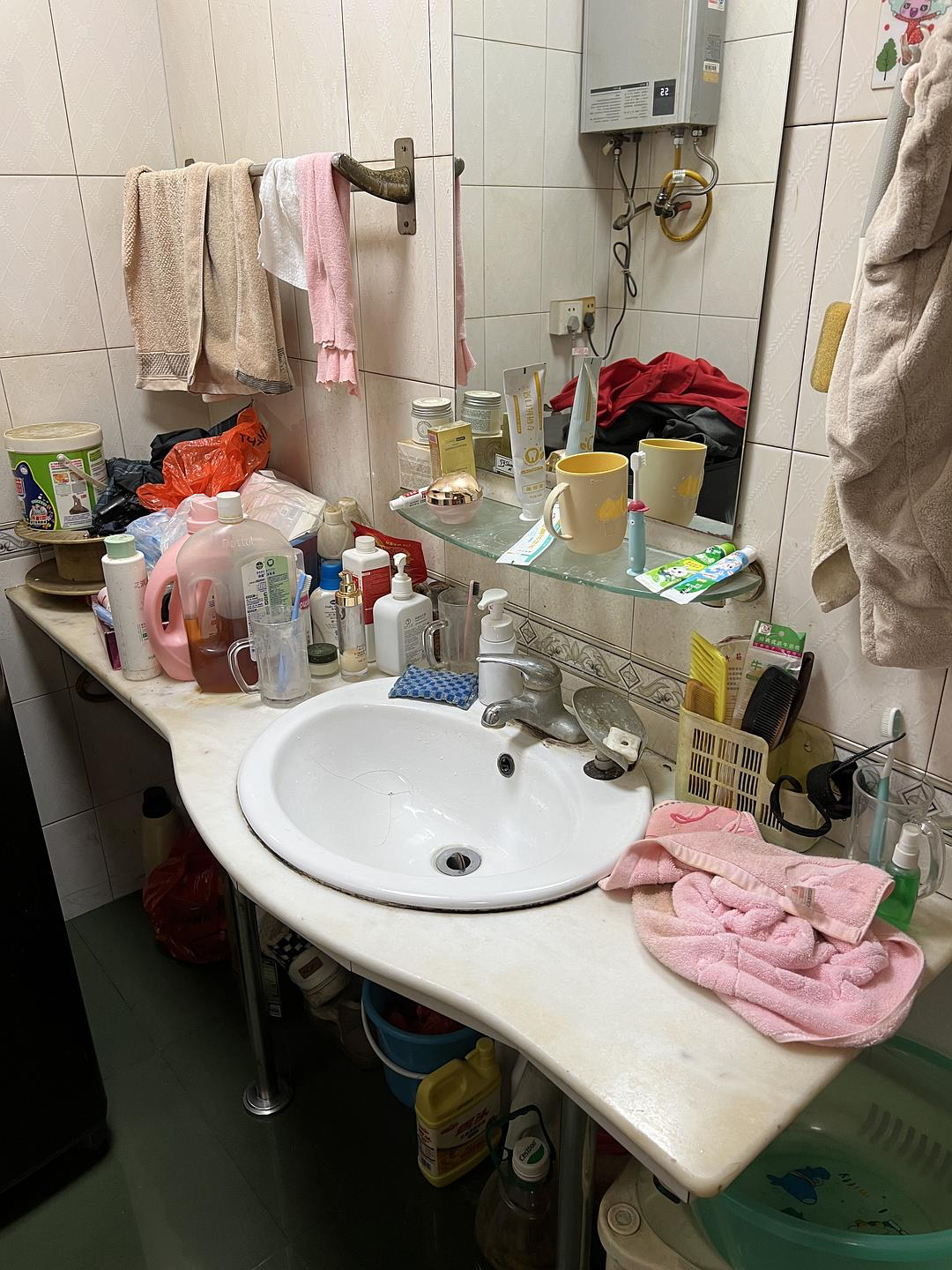 台面下全是我妈不要的棉鞋、买了从来没用过的各种洗涤剂