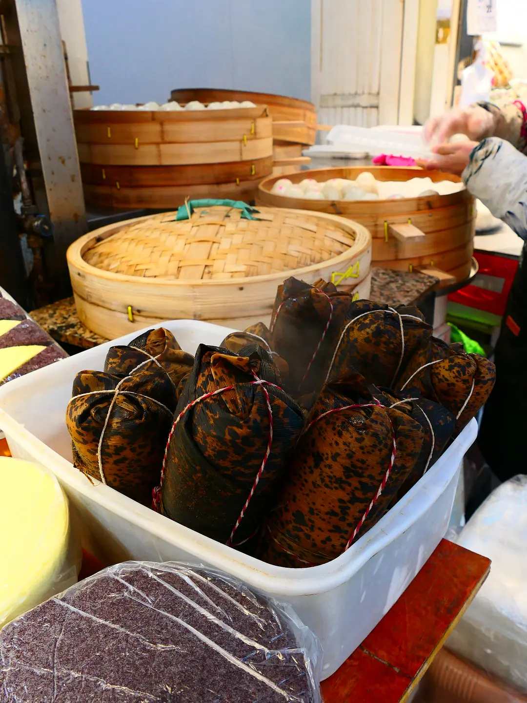 米馒头、汤包、包子、粽子、萝卜团、麻糍、烧卖、红团团、驴打滚、清凉糕、三色米糕……炸南瓜丝炸鱼丸炸虾球也可以一站买齐!