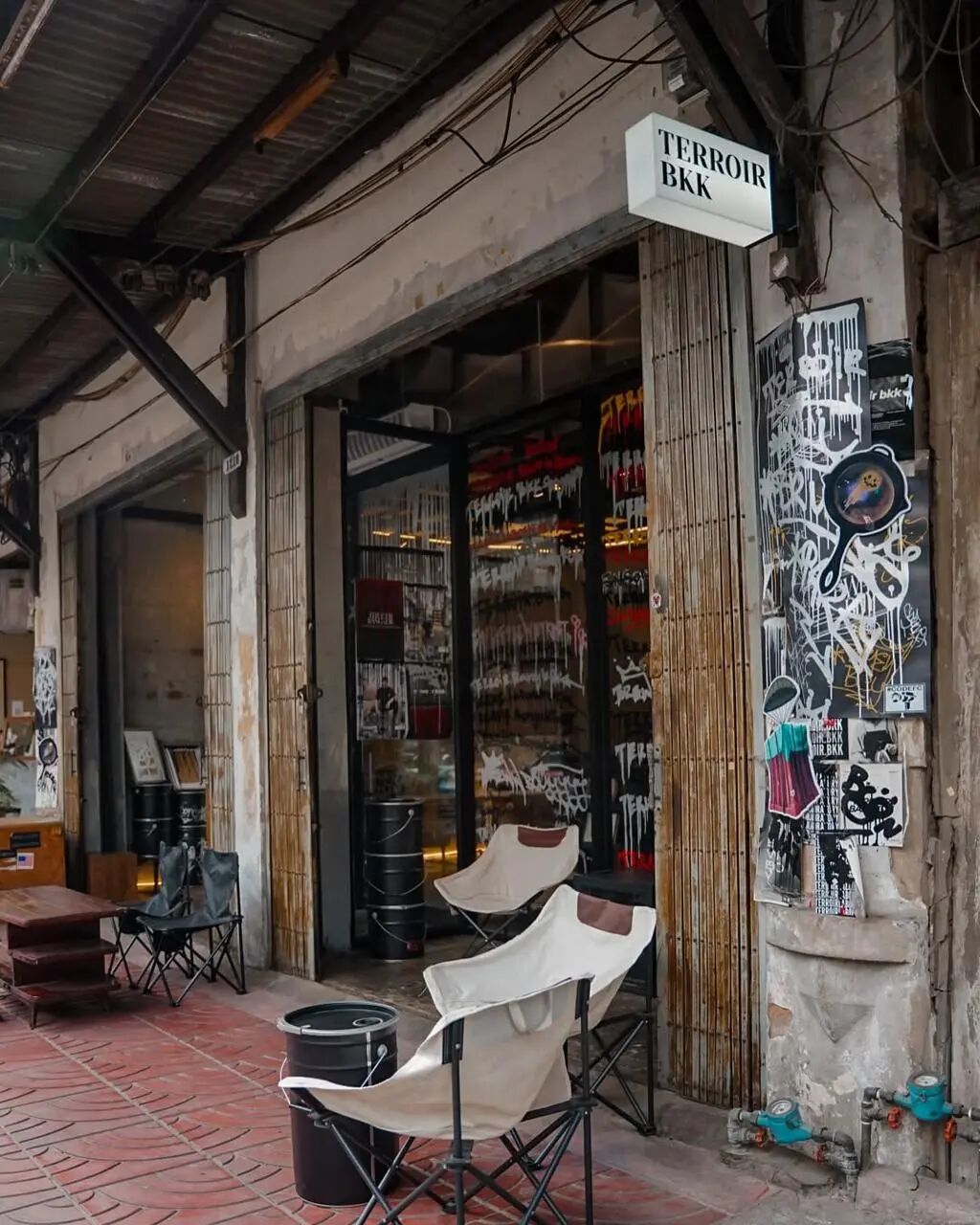 Piccolo Vicolo由一栋50多年历史的老建筑改造而成,设计师保留了原始砖墙、混凝土结构等工业元素,又巧妙地融入了落地玻璃、原木家具和大量绿植,形成复古工业风与自然森系的碰撞,充满呼吸感。Piccolo Vicolo是艺术社区“GalileOasis”的一部分,在这里可以看展、闲逛、喝咖啡,感受曼谷本地艺术家的创作活力。