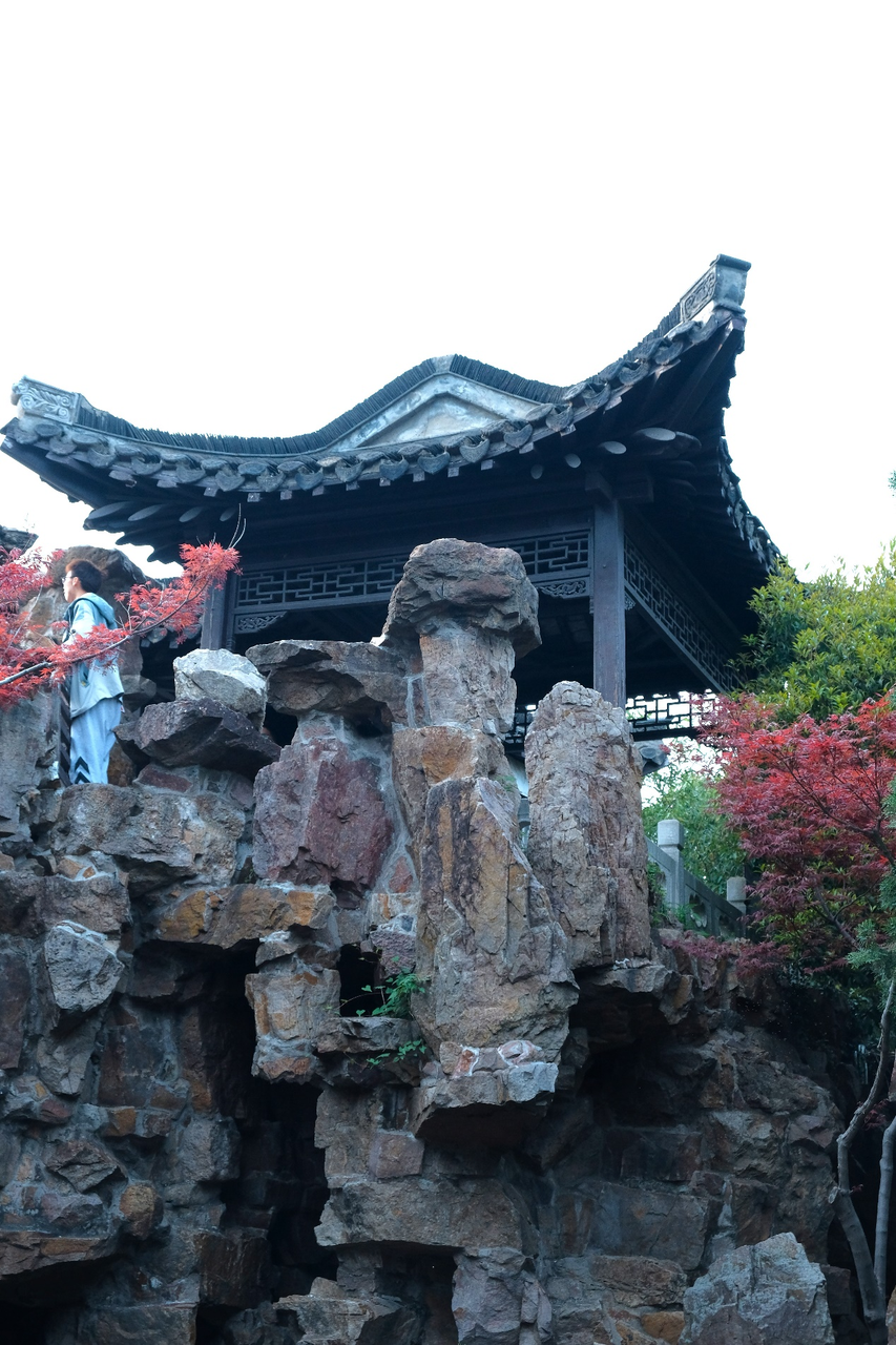 刚进入留园时便要穿过一道极长极窄的长廊,待走入园中忽见水池假山才恍然大悟别有洞天,深得欧阳修“庭院深深深几许”之意。留园分中、东、西、北部,中部有水,东部有屋,西部有山,各有主体,各具特色,而皆有节奏韵律。