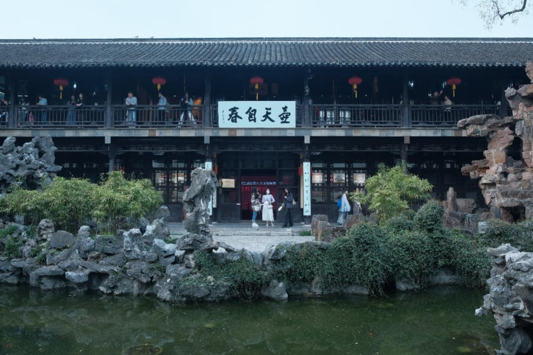 曲水园建于清乾隆十年(1745),前后历四十余年方成,也是诞生于刚刚所提到的寺庙建园的风气,所以至今曲水园的前面仍然是城隍庙。嘉庆三年(1798)改名为曲水园,因园在大盈浦旁,也取王羲之“曲水流觞”之意。咸丰年间毁于炮火,光绪年间陆续重修,遂成今日局面。