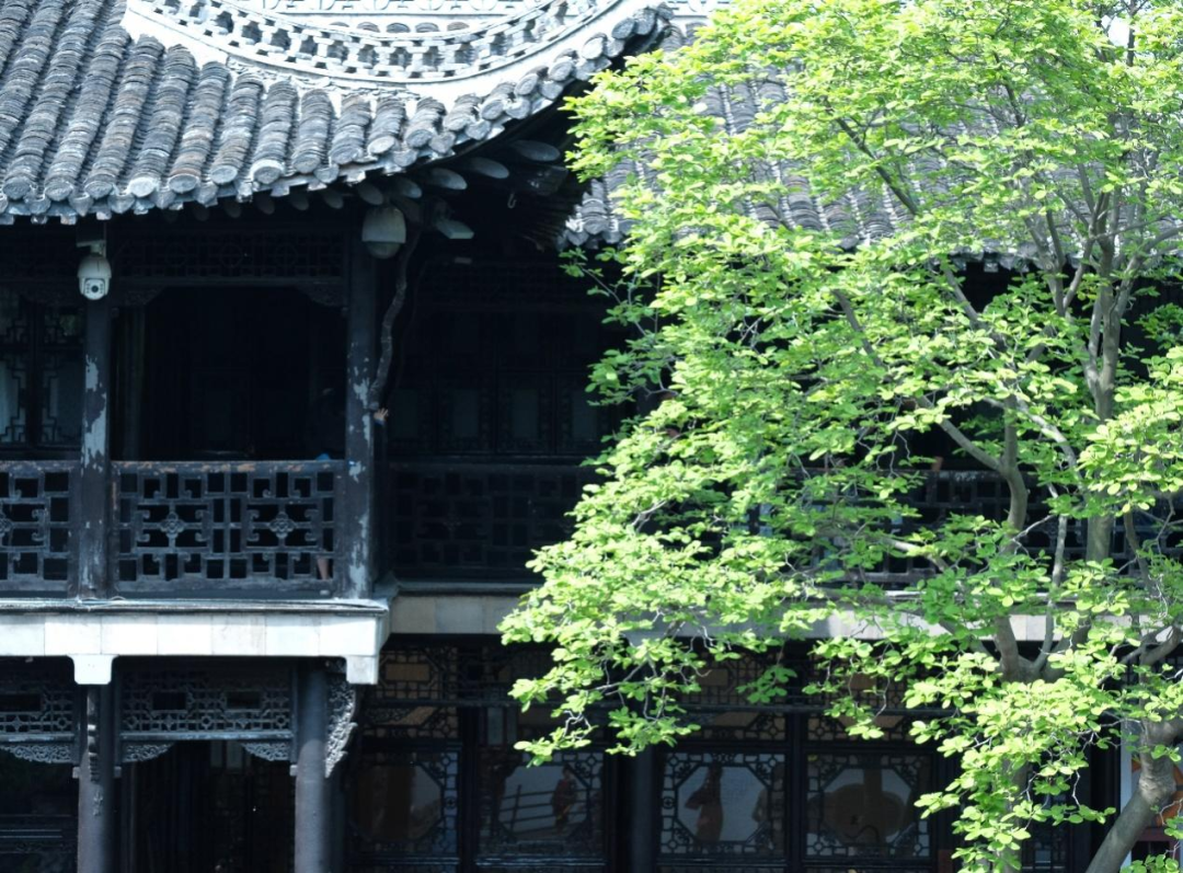 园林是方寸天地,却可容纳无限自然,究其原因是因为有着对虚实关系的精心把握,创造出无穷的空间层次。园林中我们常见的雕花漏窗便能将窗外之景引入室内,营造出“隔而不断”的空间渗透。