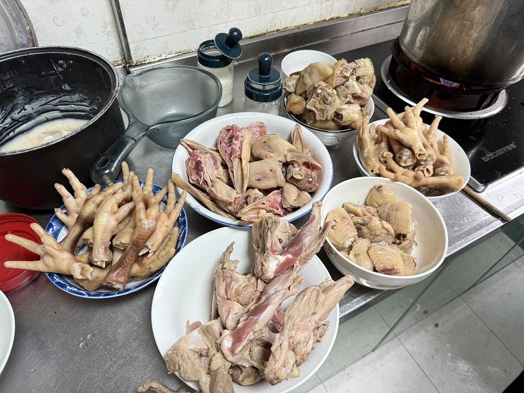 我们买了鸡爪、鸡翅、鸭头、鸭架子、猪蹄这些材料。