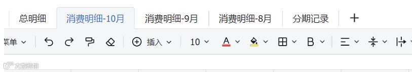 整个财务管理表格如下,分为总览、消费明细和分期明细这三个我关注的部分。