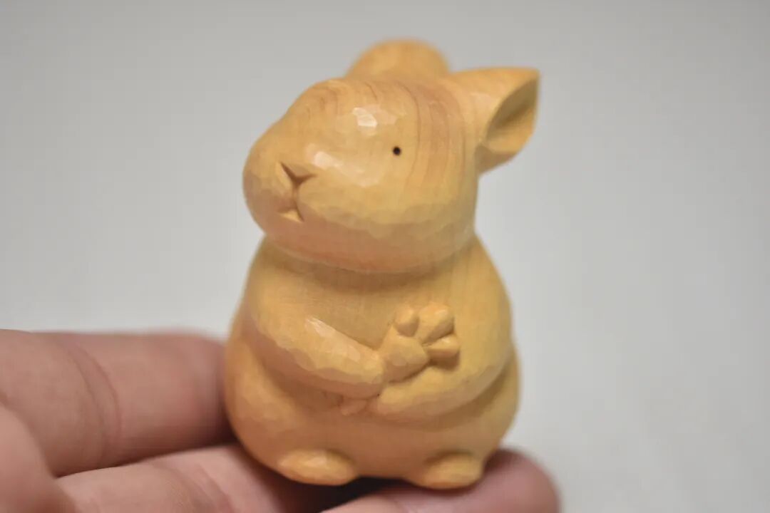 sinan12想要雕刻一只原木风的小兔子,因此,他选了质地细腻的小叶黄杨作为原料,木料自带的圈纹为兔子带来了可爱的憨态。