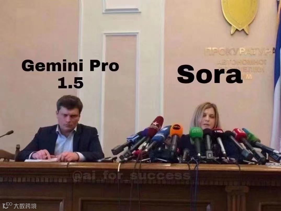 不过此刻最悲伤的应该是Google,本来拿来翻盘用的的Gemini1.5发布风头完全被Sora压过。作为AI界的汪峰,它对此没有评论。