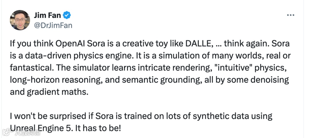Jim Fan感叹:Sora是一个数据驱动的物理引擎