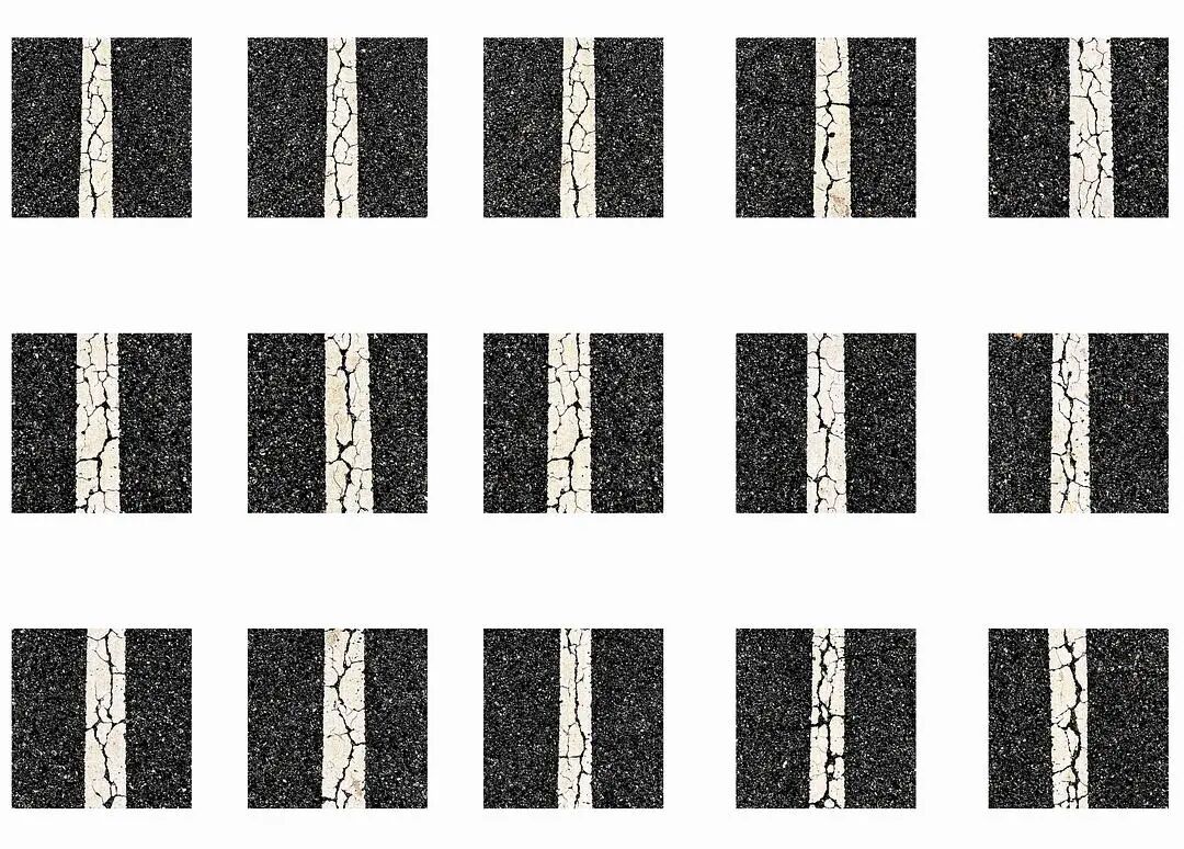 在路边等公交车的时候看到了斑马线上的“裂缝”,便沿途将整条路上的“裂缝”都拍摄下来,进行艺术创作。