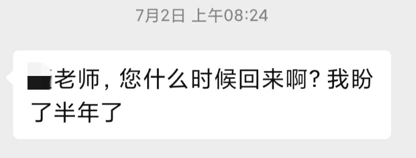 前天中午我从食堂回办公室,发现背后一直有窸窸窣窣的脚步声,跟着我走了好远,我就回头看了一眼,发现是二班一个很内向的女生,小姑娘眼圈红红地说“老师你真的回来了”,我说”嗯,回来了”,然后抬起手揉了揉她头发,小女孩的头发真软,我的心也跟着变得好软。