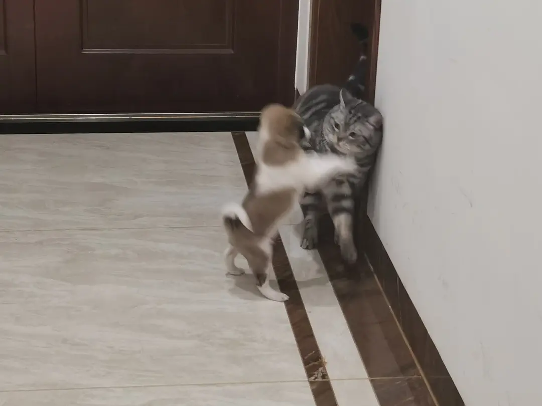原文标题:捡到的小狗和猫猫相处的很好