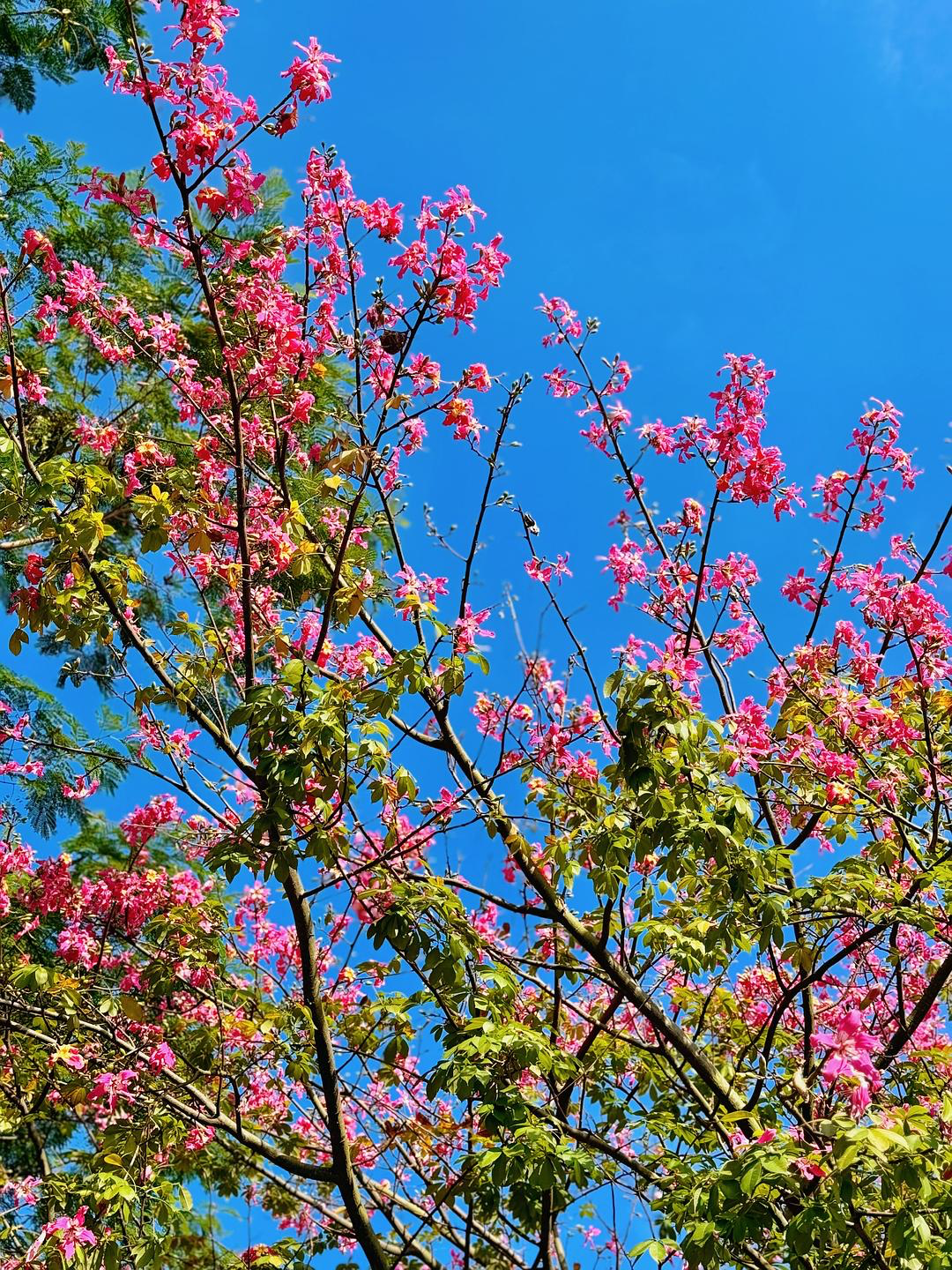 我养了一只小狗,每天都会和小狗一起出门去附近的公园遛弯。天色还早的时候,常常能看到路边的花树开了,天空蓝蓝的,河水潺潺,人们三三两两坐在河边聊天。不知不觉就被自然治愈。