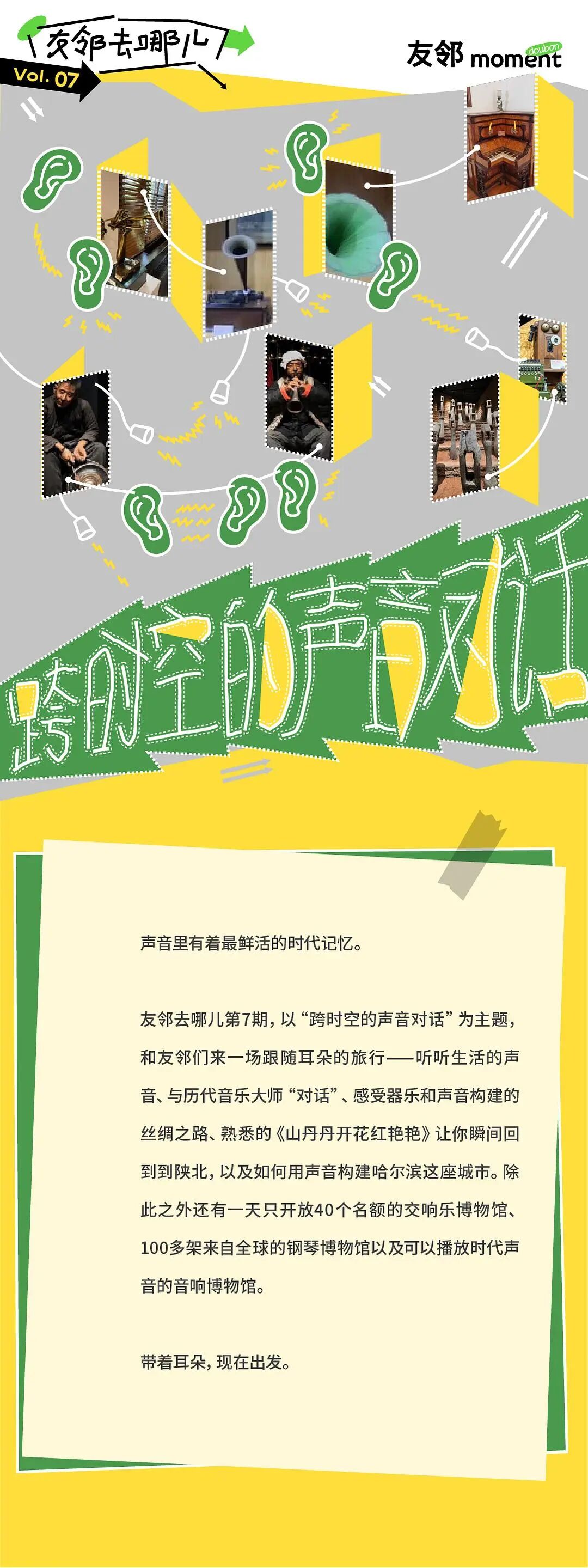 友邻去哪儿第7期,以“跨时空的声音对话”为主题,和友邻们来一场跟随耳朵的旅行,一同探索北京、成都、呼和浩特、上海、哈尔滨、榆林、鼓浪屿和广州8座城市的“声音博物馆”。